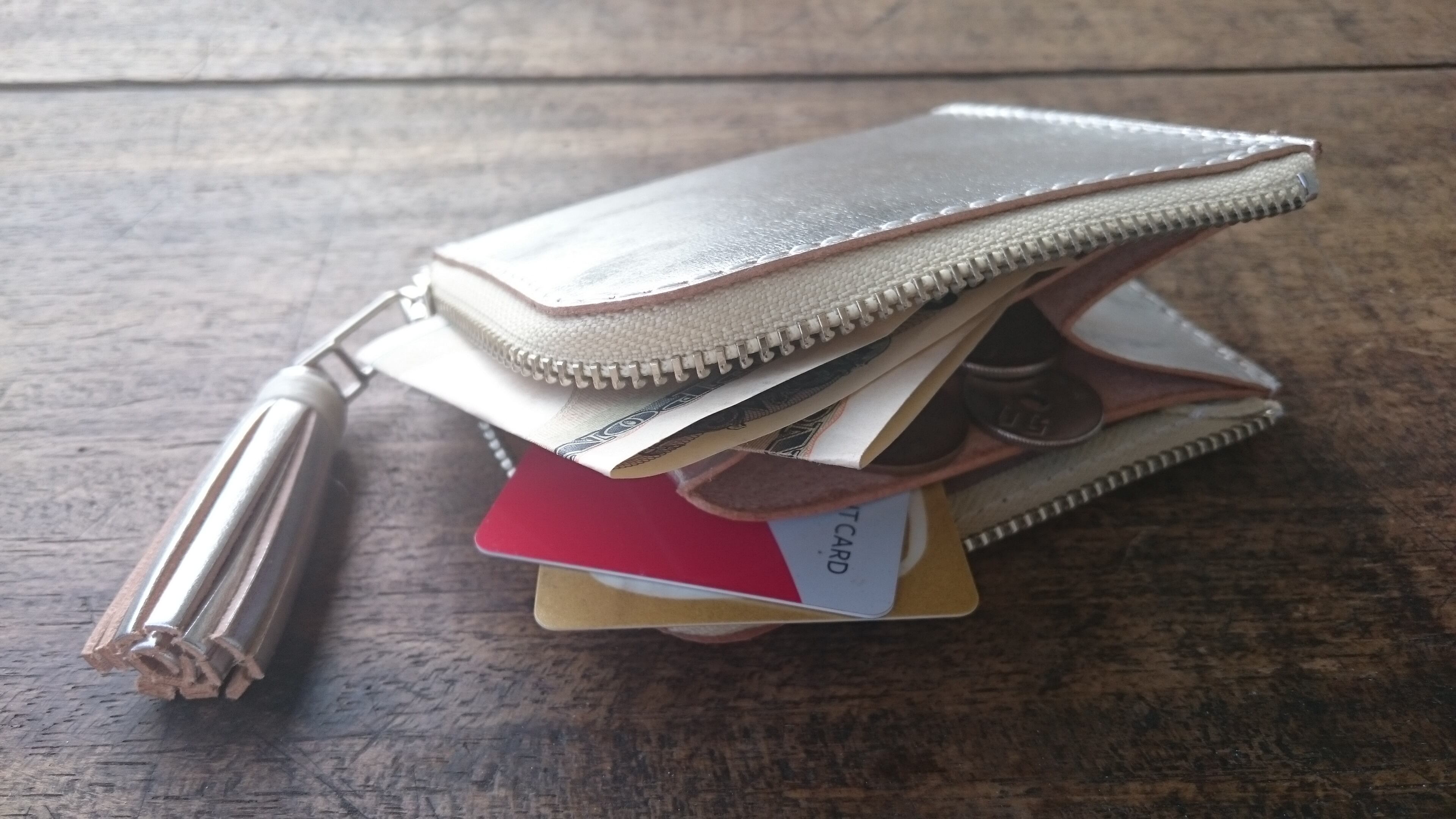 また小銭入れ部分は開いた時に三角形になるようにマチを付けており小銭が格段に取り出しやすくなっております。