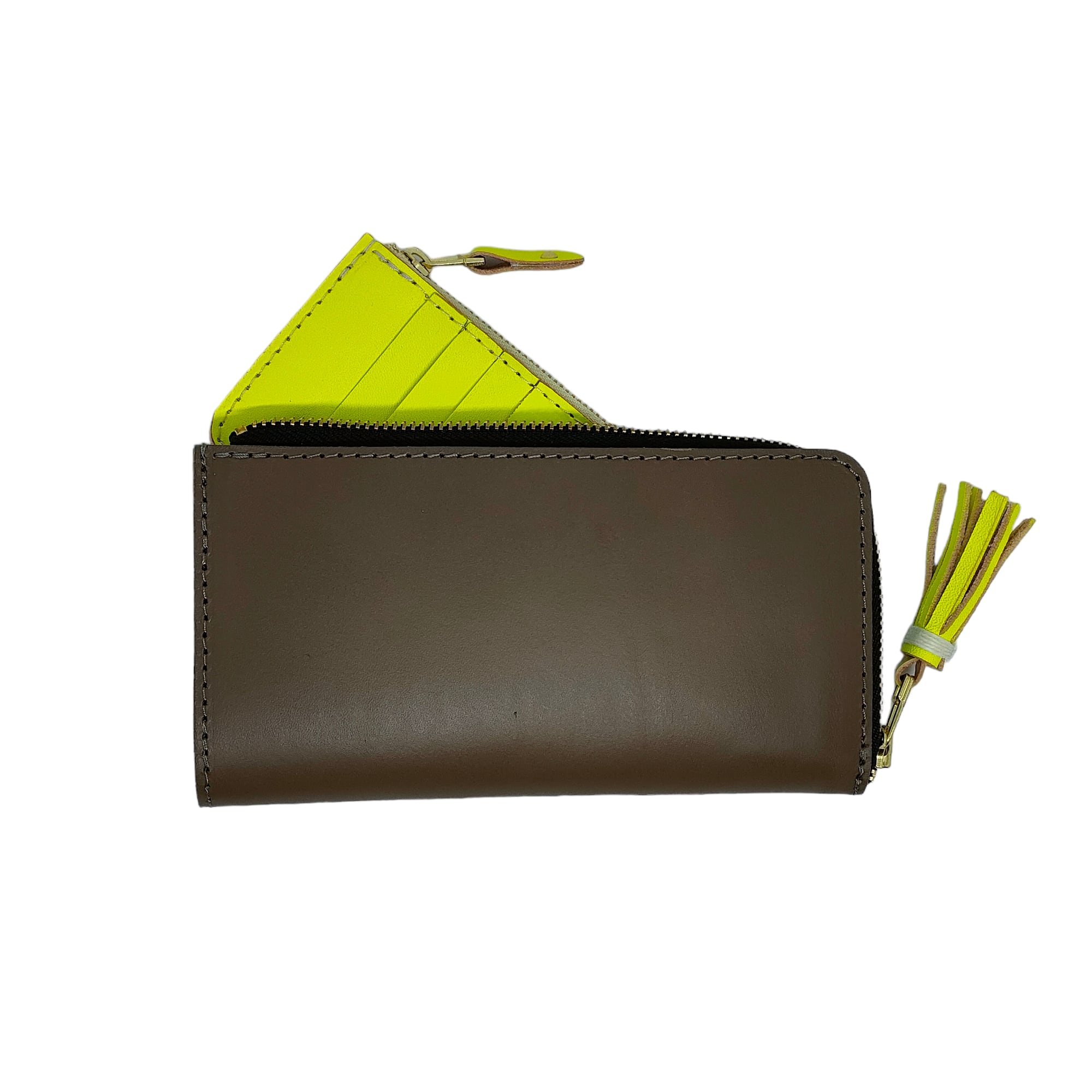 この財布の特長は、なんと言っても便利なフラグメントケース付き。小銭やカード、お札を整理するのに便利で、常にスマートな外見をキープします。L字型の開閉部分には、しっかりとしたYKKのファスナーを採用し、安心感と高級感を兼ね備えています。